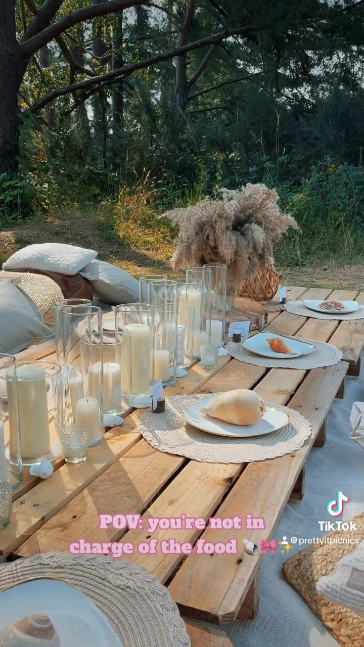 Inspired by the magic of Nordic summer nights, our Midsommer Forest picnic brings together exposed wood, vibrant wildflowers, and the soft glow of candlelight for a truly enchanting outdoor experience. Perfect for a cozy garden party, sunset gathering, or a rustic BBQ, this theme creates a warm, woodland-inspired atmosphere that feels straight out of a fairytale.The setup includes rustic pallet tables, comfortable cushions, and carefully styled table décor to complete the forest-chic look. Want to add a little extra charm? Disposable plates, cups, straws, candles, and balloons are available to complete the aesthetic (at an additional cost).Ideal for late summer evenings when nature feels most alive.